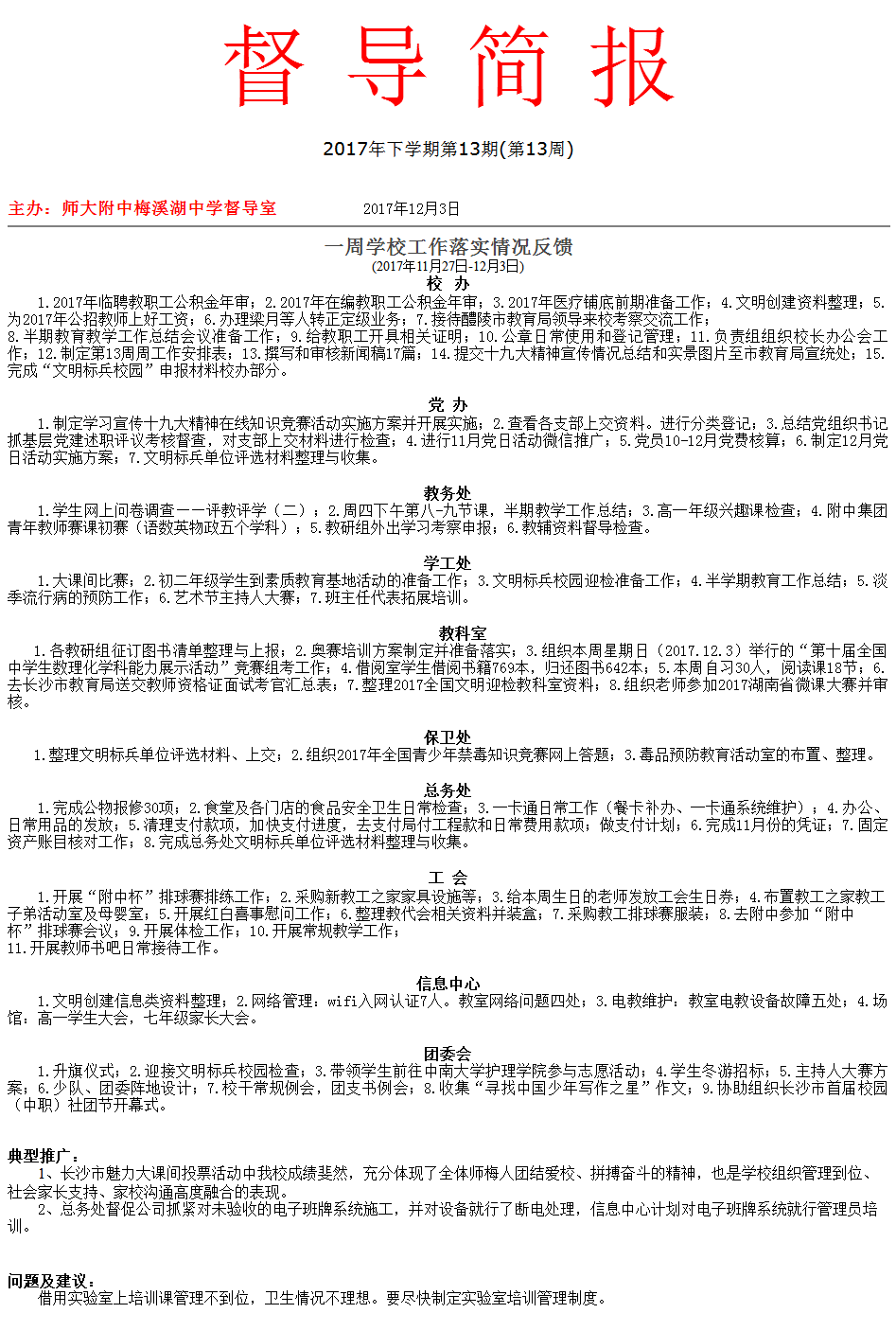 湖南师大附中梅溪湖中学《督 导 简 报》20170213