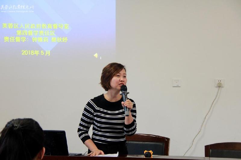 钟雅莉督学针对“责任督学挂牌督导工作”进行了细致的讲解:责任督学挂牌督导工作的概念;此项工作的来源和意义、作用;芙蓉区责任督学分片区的情况;责任督学的职责范围,工作的内容;此项工作开展至今所获的成绩等几个方面。还展示了许多工作开展的实景照片和文字资料等。让老师们对此项工作有了更进一步的了解。进一步理解了“督政”、“督学”、“教育质量监测”一系列工作的实施流程和意义。之后,督学还与老师们进行了亲切的交流,感谢学校行政和老师对督学工作的重视和积极配合。