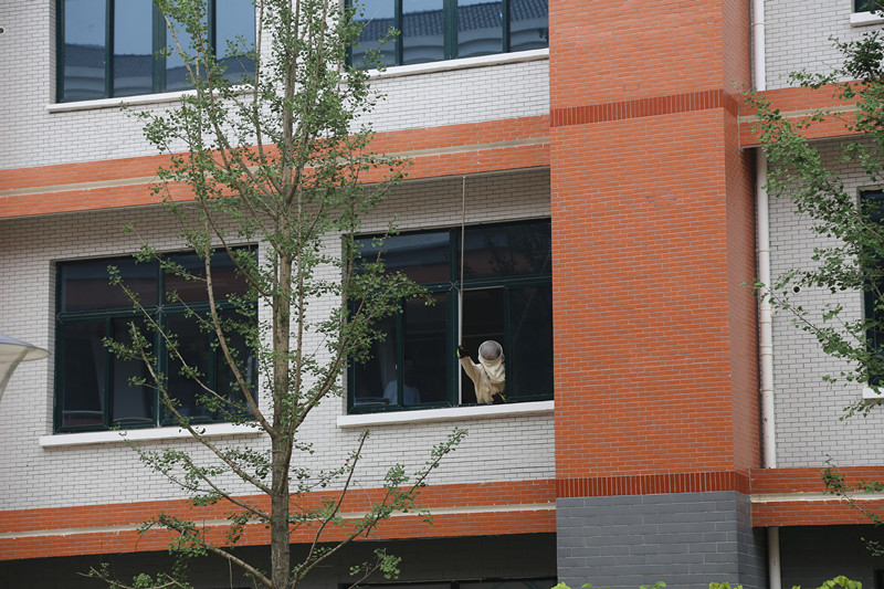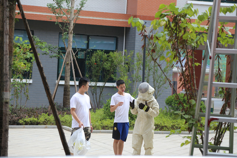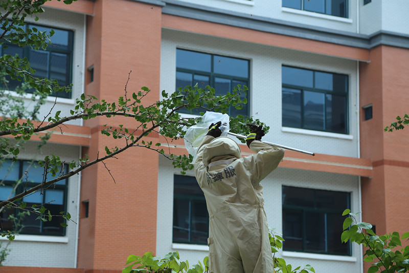 长沙县消防中队冒酷暑除蜂窝,确保师生安全